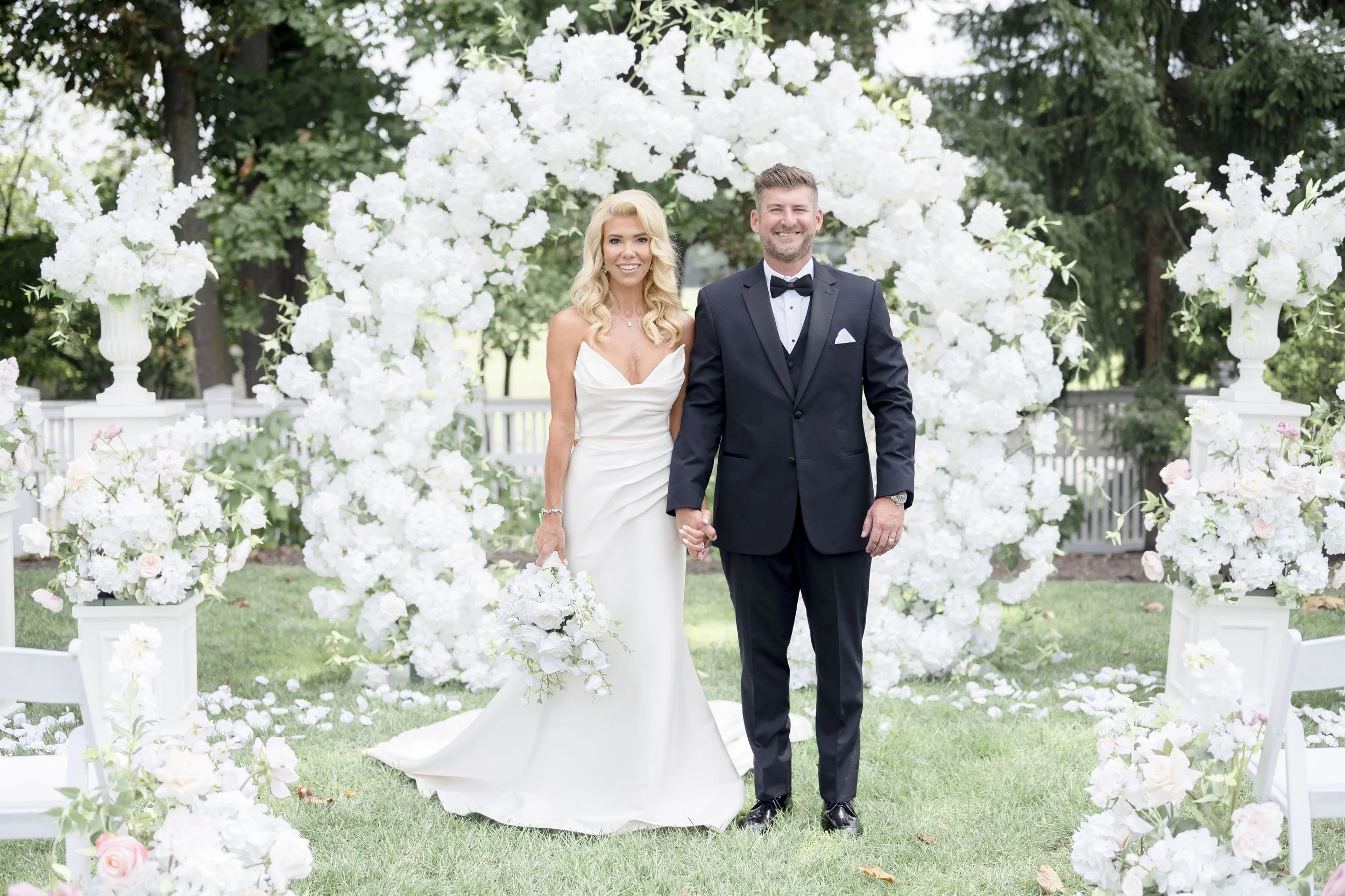 The ultimate white wedding must-have for Indiana brides, our signature Ever After Arch is a stunning showstopper. With cloud-like florals and delicate greenery, this floral masterpiece creates a dramatic, storybook-worthy backdrop for your vows. Perfect for couples seeking a blend of timeless romance and modern luxury, it’s the ceremony centerpiece that makes your special moment unforgettable.