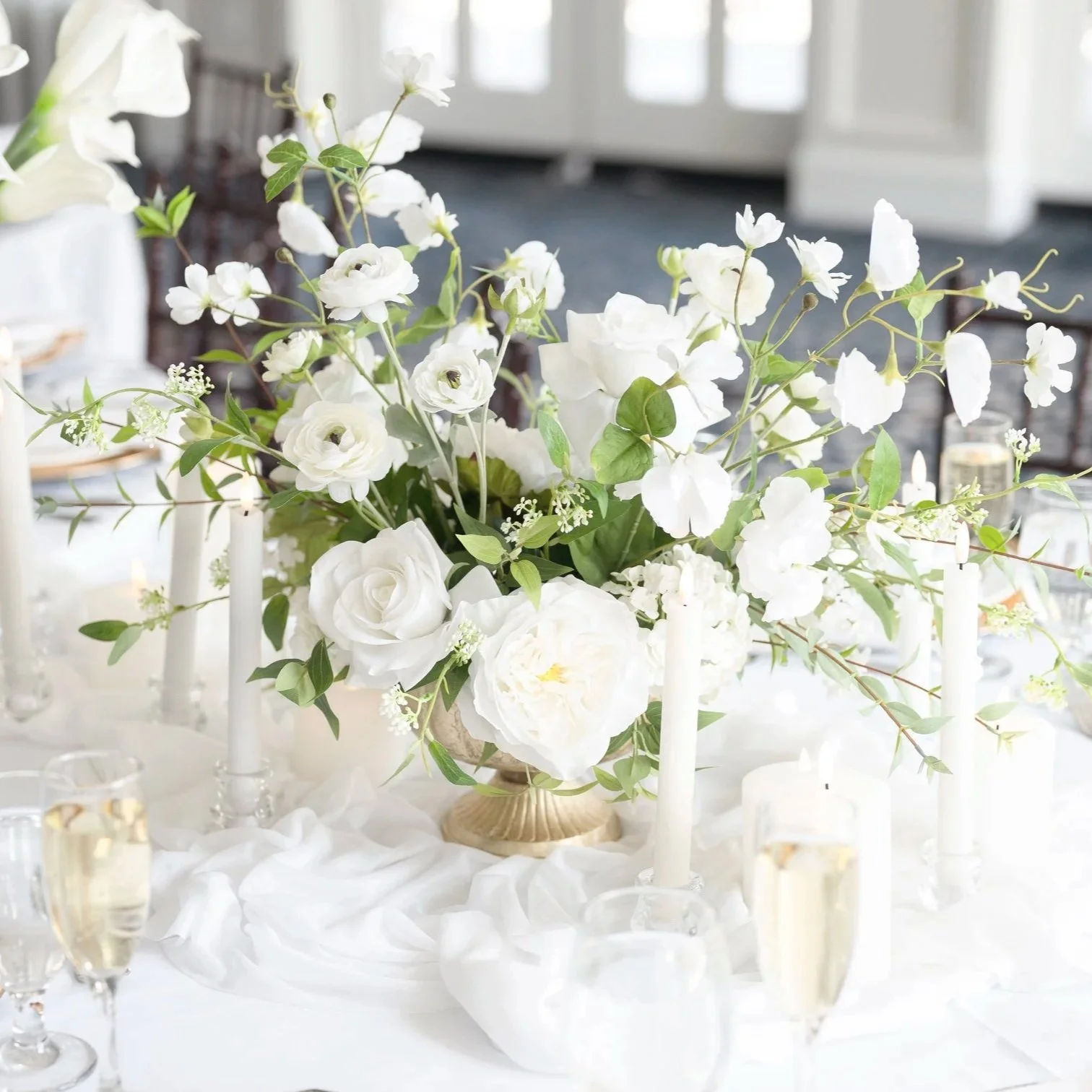 Walk down an aisle lined with timeless elegance. Our Garden Aisle Flowers feature delicate white florals and lush greenery, designed to create a romantic, storybook setting for Indiana weddings. Fully customizable with accent colors, these breathtaking floral arrangements transform your walk to “I do” into an unforgettable moment.