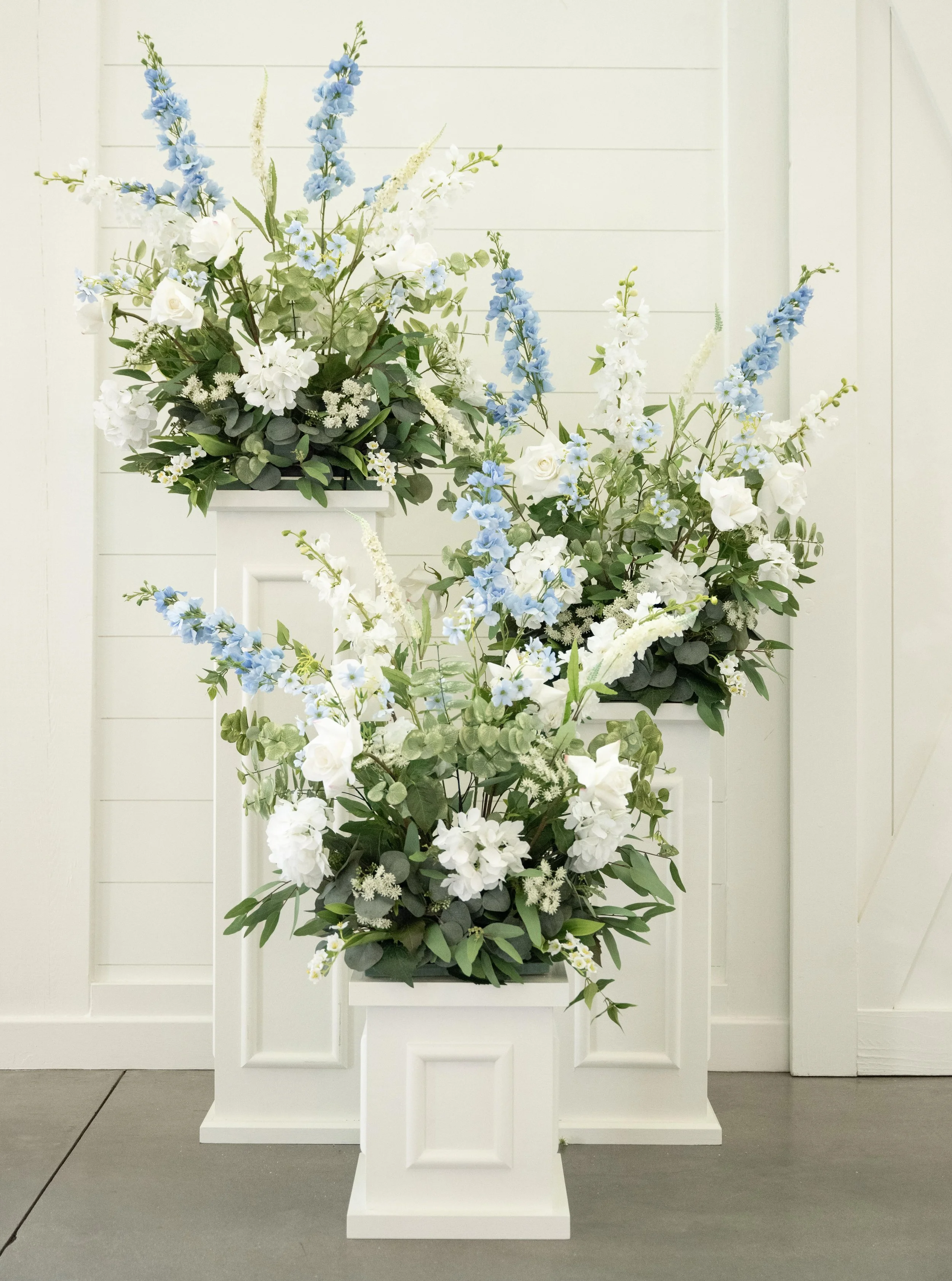 Our aisle flower sets are stunning on their own, yet fully customizable. We are happy to tailor our pieces to your vision by adding your primary wedding color(s). To help inspire you, we’ve included examples of complementary color palettes in the slideshow above—the possibilities are limitless!